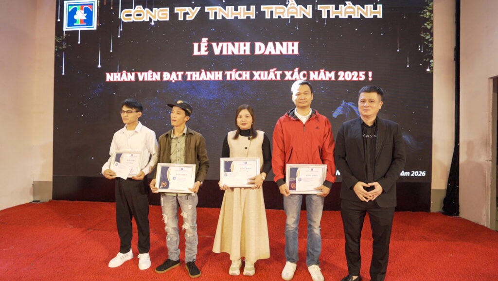 Ba nhà máy cùng vinh danh những Nhân viên xuất sắc 2025, những con người đã âm thầm nỗ lực để đảm bảo chất lượng bao bì carton và xốp đạt chuẩn. Khi tên người chiến thắng được xướng lên, cả hội trường bùng nổ trong tràng pháo tay và những tiếng reo mừng — khoảnh khắc ấy như một lời khẳng định rằng mọi cố gắng đều được nhìn thấy và trân trọng. Sự cổ vũ nồng nhiệt không chỉ tiếp thêm niềm tin cho người được vinh danh mà còn truyền cảm hứng cho đồng nghiệp, thôi thúc mỗi người tiếp tục sáng tạo, nâng cao tay nghề và cùng nhau đưa Trần Thành tiến xa hơn trong năm 2026.